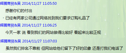 蘇州禮品公司自上線以來,一直配合蘇州網絡公司進行網站SEO優化,如今已經初見成效。附上客戶聊天截圖如下