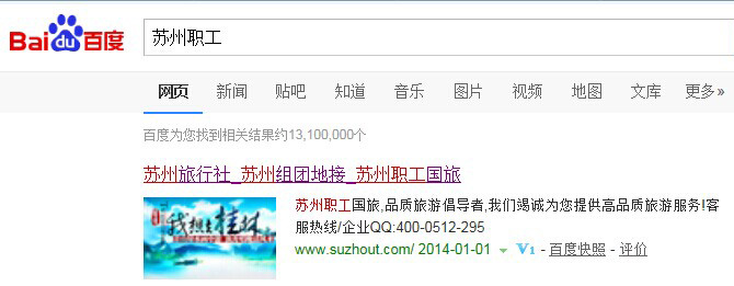 蘇州網絡公司新上線的一個網站在寫了“title、keywords、description”這三個之后提交到百度,加上最近百度剛好更新,幾乎是秒收,雖說現在很多標題關鍵詞以及描述被眾多站長朋友們已經做爛了,正如我們之前一篇文章中提到的“”,但從下圖看來,蘇州職工快照隨沒有改變,但是內容已經是最新修改后的標題描述了,可見網站的這三要素的重要性仍舊是不可否認的。